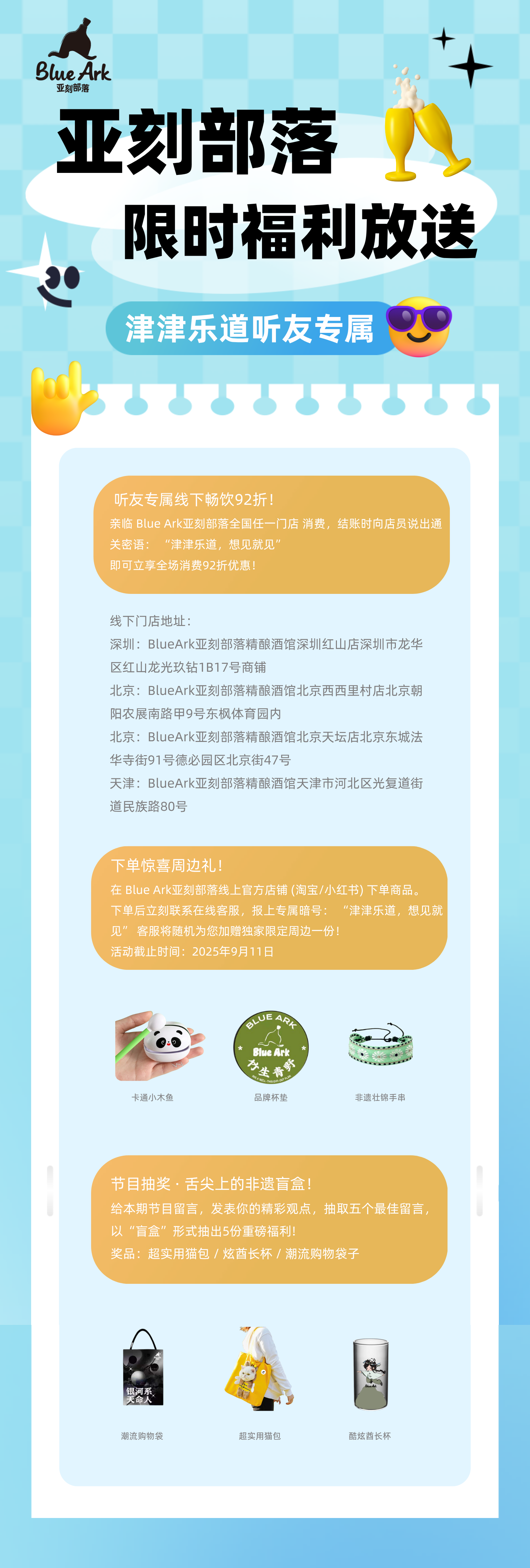 这次与津津乐道的梦幻联动,特意为听友们准备了超值专属福利!无论线上小酌还是线下欢聚,都能感受我们的心意: